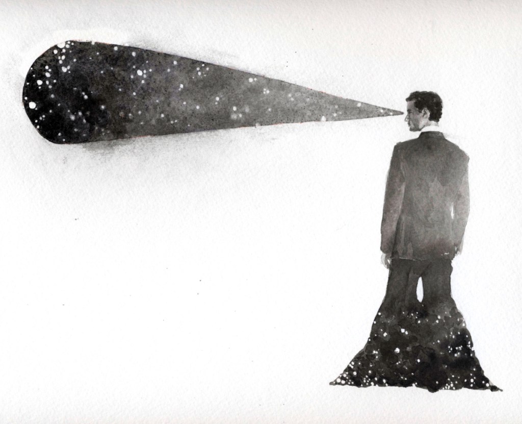 Found wood, sumi ink, paper