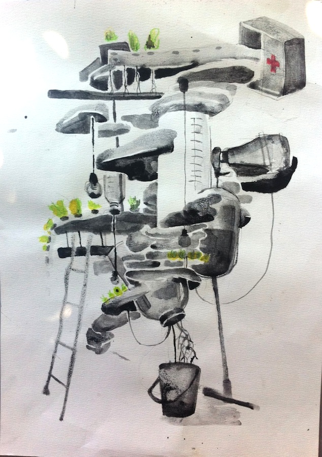 Closed window, bird nest, big mistake. Posted on May 8, 2013 Ink on paper, drawn from a recent memory.